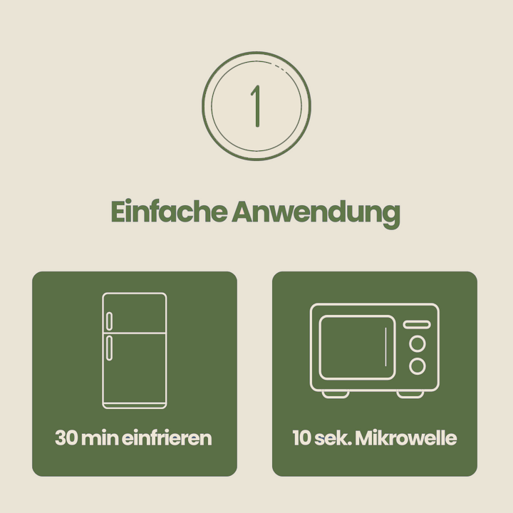 Bereits nach 20s - 60s auf niedrigster Einstellung in der Mikrowelle ist die Migrämü™ für die Wärmetherapie einsatzbereit.