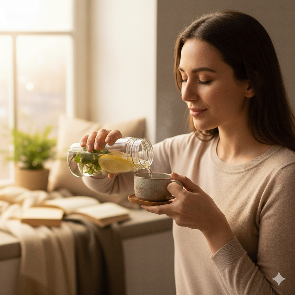 Zubereitung deines Well-Being Tees (Anis und Minze & Fenchel, Anis, Kümmel und ein Hauch von Kamille und Zitronenmelisse & Melisse und Salbei & Lindenblüte, Eukalyptus und Pfefferminze)